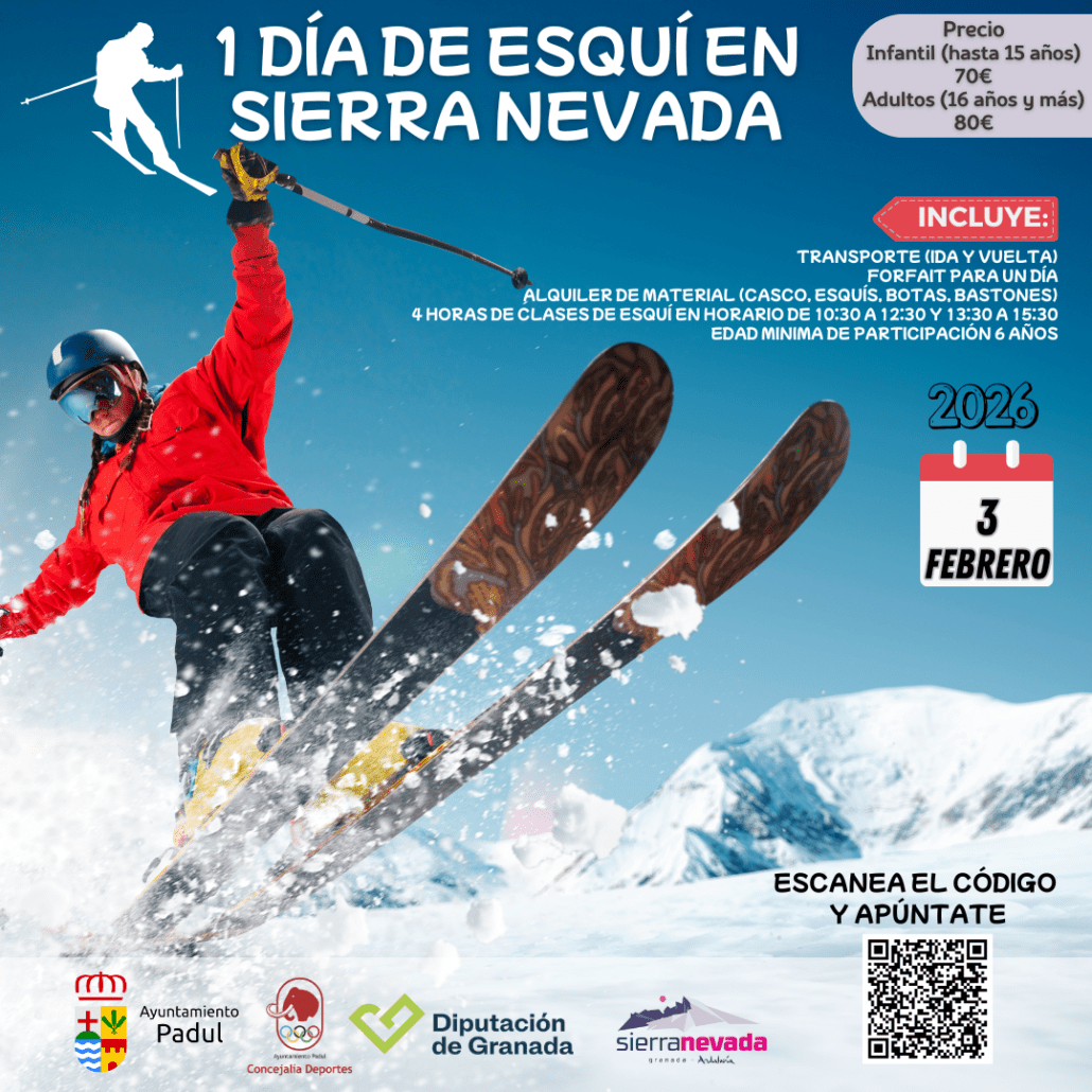 El Ayuntamiento de Padul, a través del Área de Deportes, organiza una nueva edición de la actividad “Un día de esquí en Sierra Nevada”, enmarcada dentro del programa de promoción del esquí de la Diputación de Granada, dirigida a municipios de menos de 100.000 habitantes.