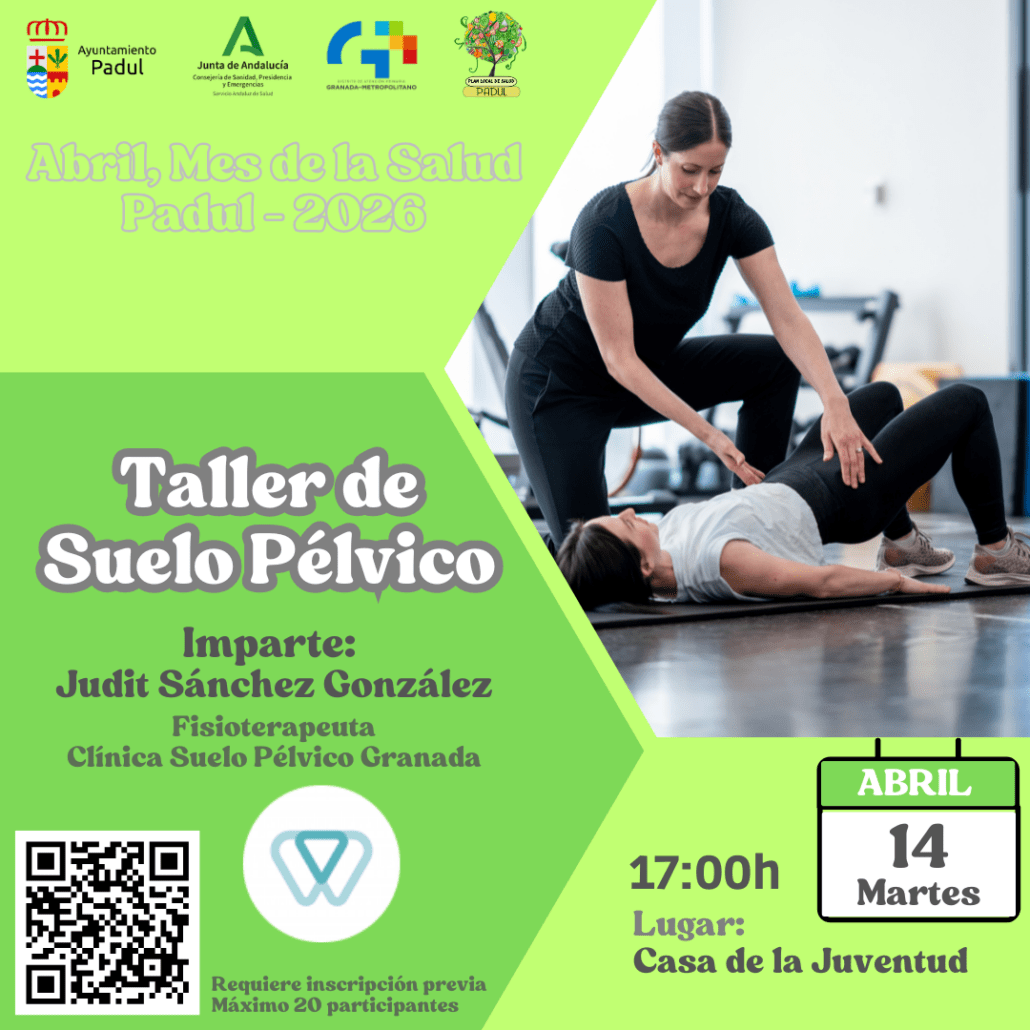 El Ayuntamiento de Padul, a través de su programación “Abril, Mes de la Salud Padul 2026”, abre el plazo de inscripción para el Taller de Suelo Pélvico, una actividad orientada a la promoción de la salud y el bienestar.
