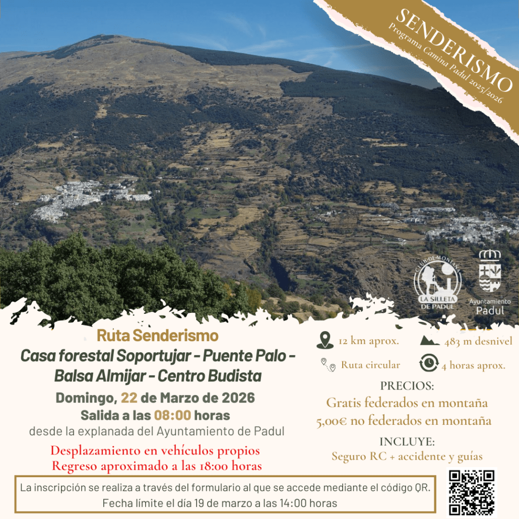 El Área de Deportes del Ayuntamiento de Padul, en colaboración con el Club de Montaña «La Silleta», continúan con su programa Camina Padul 2025-2026 con una nueva propuesta de senderismo que nos llevará hasta uno de los paisajes más espectaculares de la Alpujarra granadina.